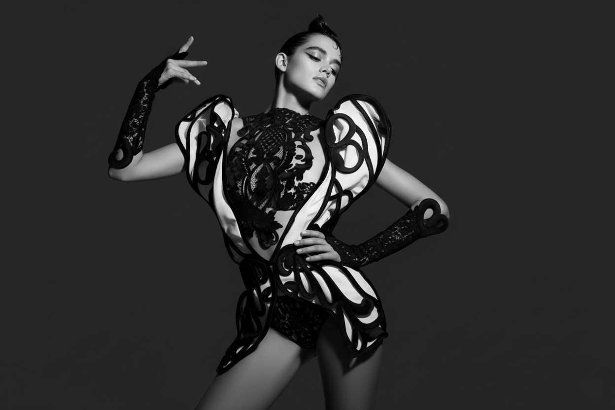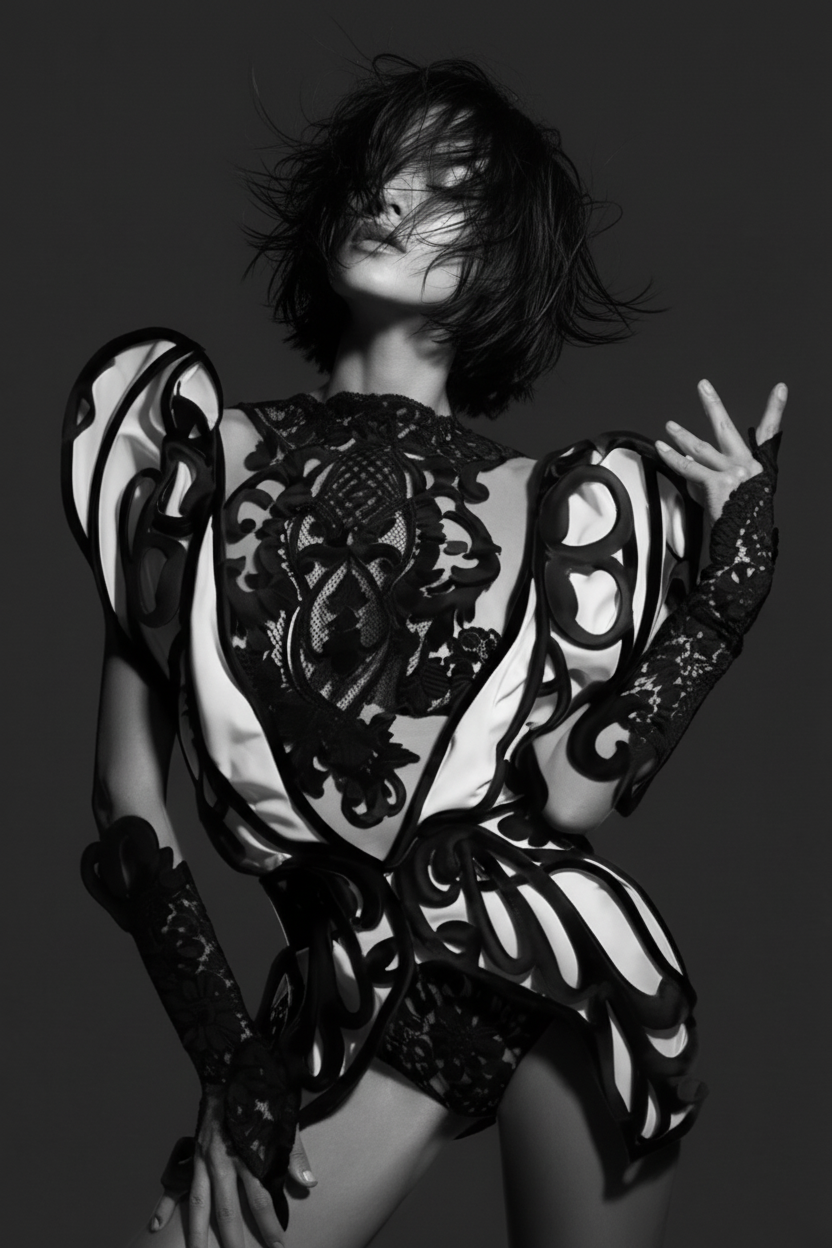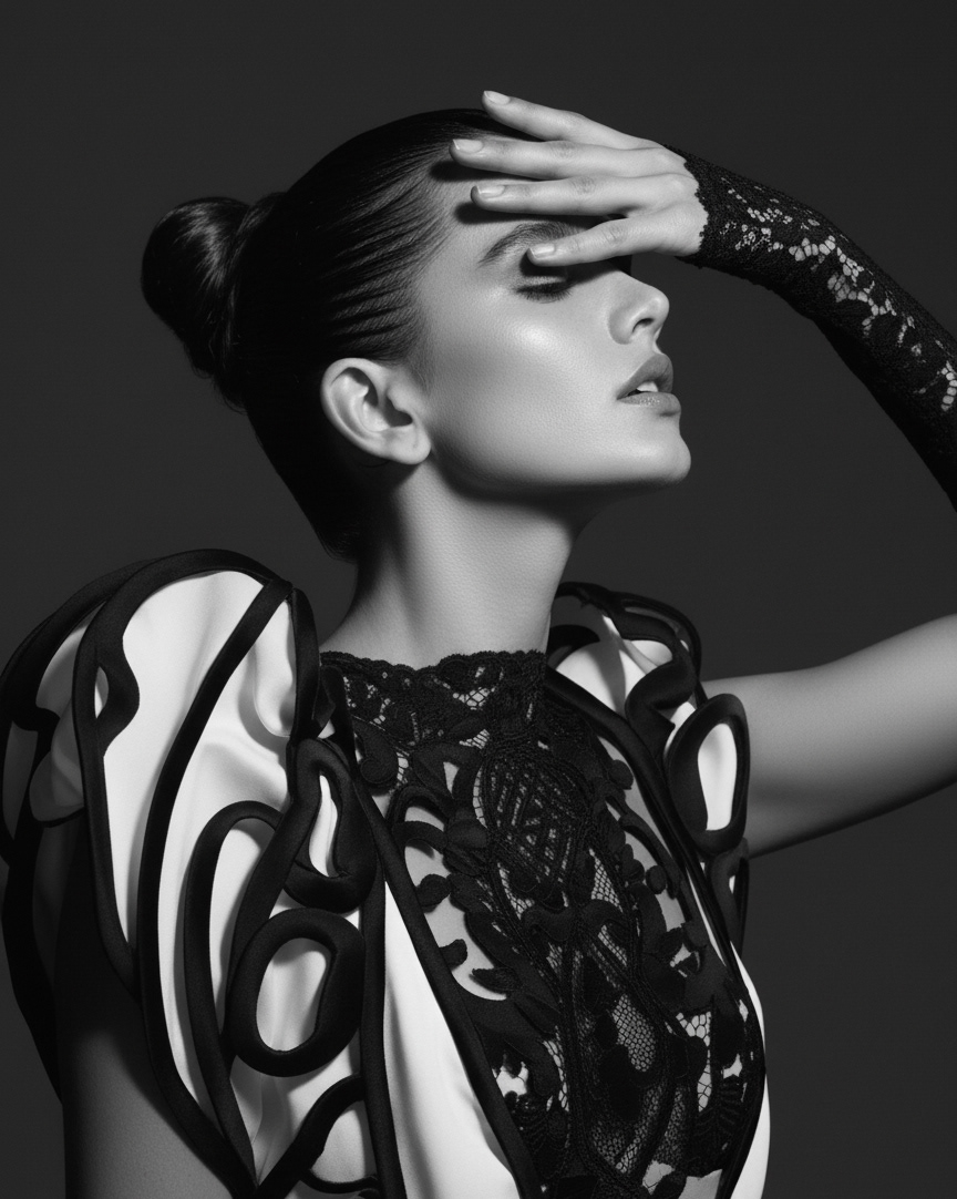 Le travail sur le contraste du noir et blanc sublime cette vision. Les ombres profondes et la lumière créent un dialogue visuel intense, faisant de cette campagne un hymne à la féminité moderne et à l'affirmation de soi.