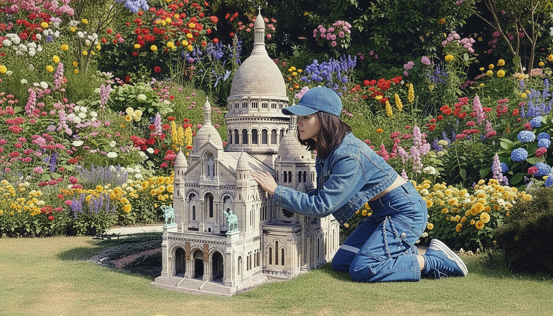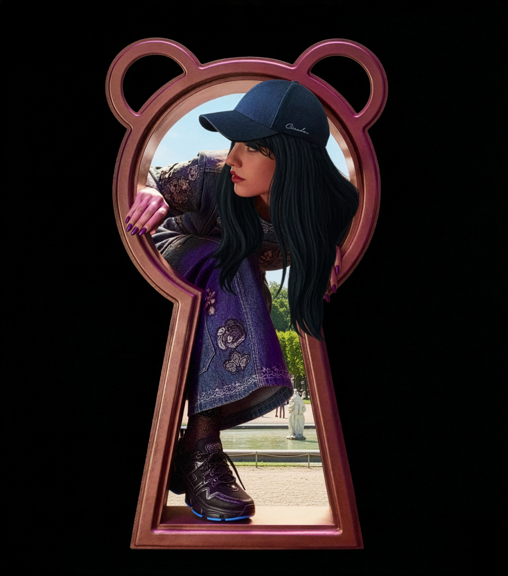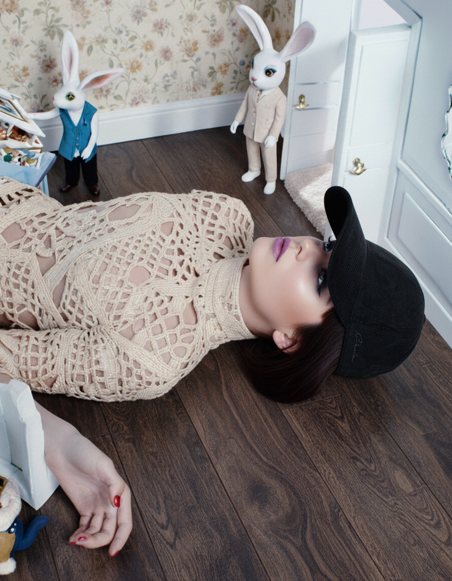 La série se déploie comme un recueil de contes visuels. Les mannequins, devenus des figures énigmatiques, évoluent dans des décors réduits à l'essentiel : une chambre transformée en maison de poupée, un monument parisien en simple maquette. Dans ces mondes d'illusions, les casquettes Cicada ne sont plus de simples accessoires, mais des pièces de haute couture qui redéfinissent la silhouette avec audace.