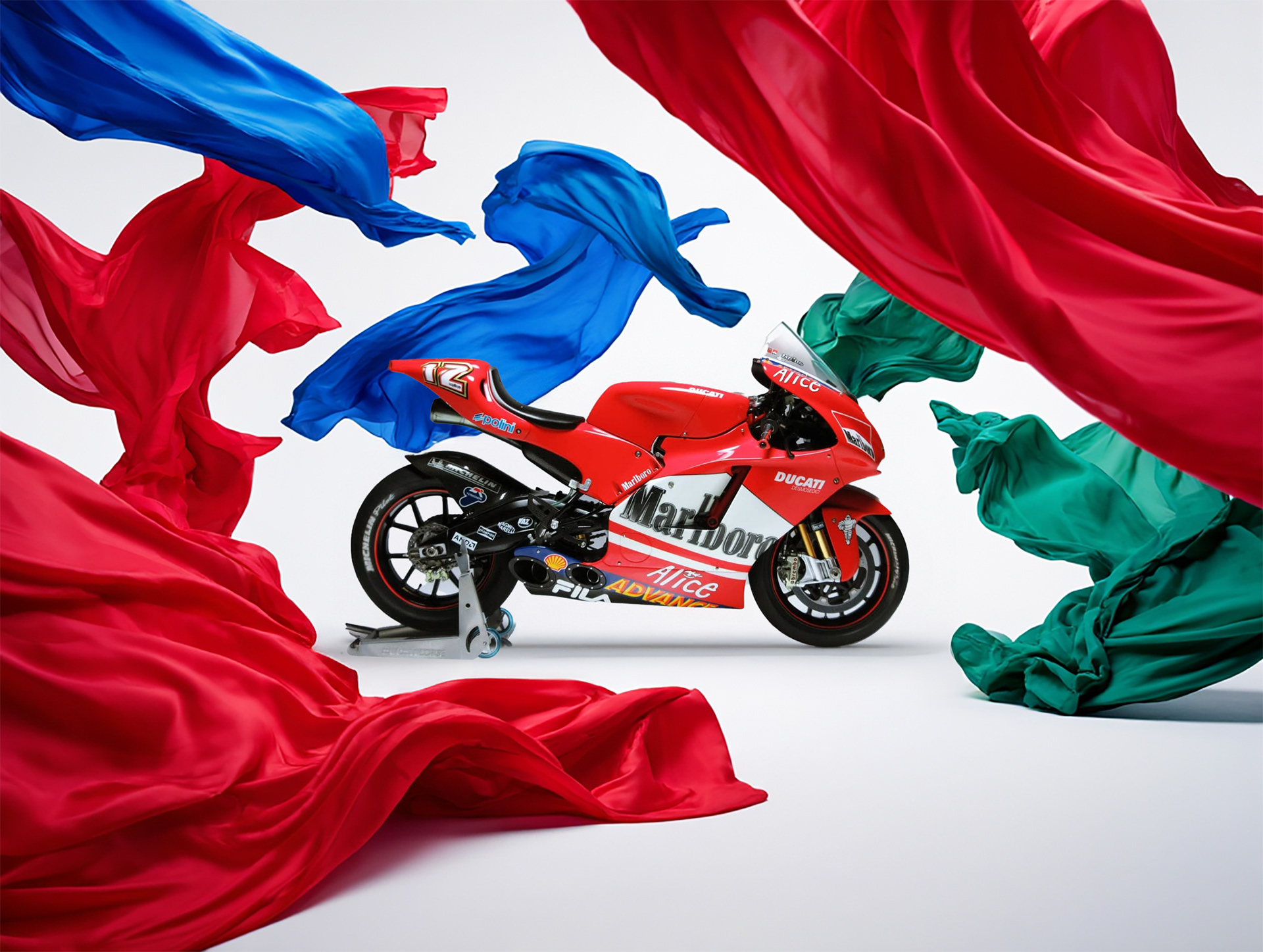 Esthétique de la vitesse pure Prototype de course conçu pour l’élite du MotoGP, la Desmosedici GP est un condensé de technologie extrême.