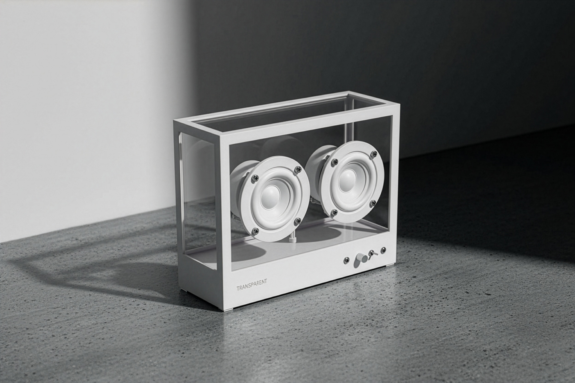 À la croisée de l’ingénierie et du minimalisme, les enceintes Transparent se distinguent par leur structure ouverte et leur langage formel radical. Chaque composant est assumé, lisible et intégré comme partie prenante de l’objet, sans artifice.